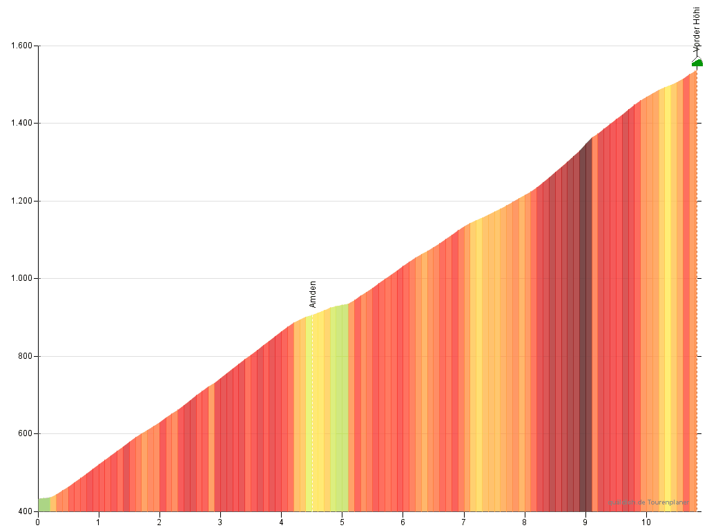 10.8 km | 1111 Hm | 10.3% average – with spicy segments tipping well over 25%. Honestly, it’s less “road” and more “vertical suggestion.”